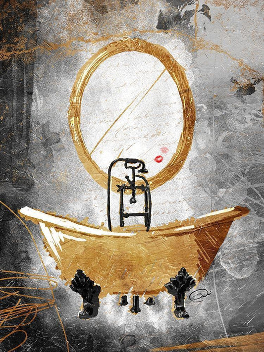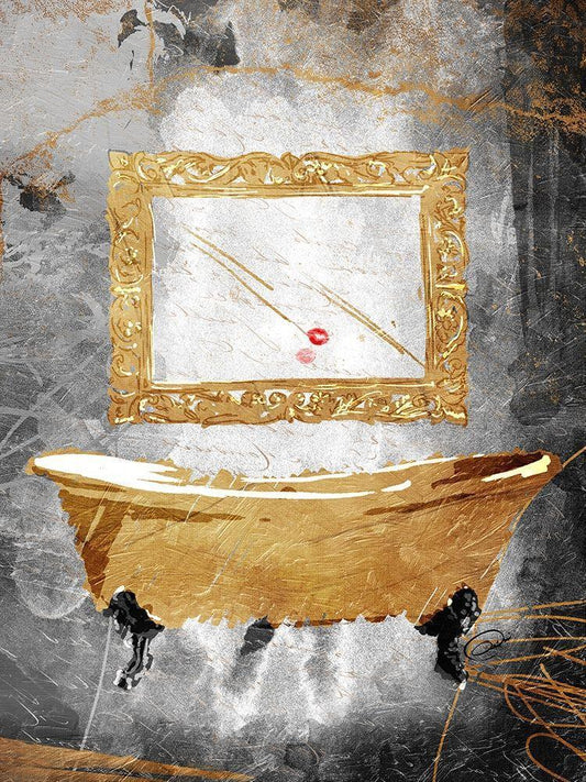 Golden Bath Kiss White Modern Wood Framed Art Print with Double Matting by OnRei