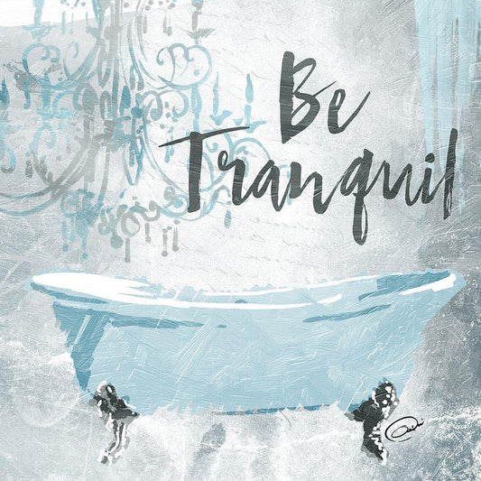 Soft Blue Bath White Modern Wood Framed Art Print with Double Matting by OnRei