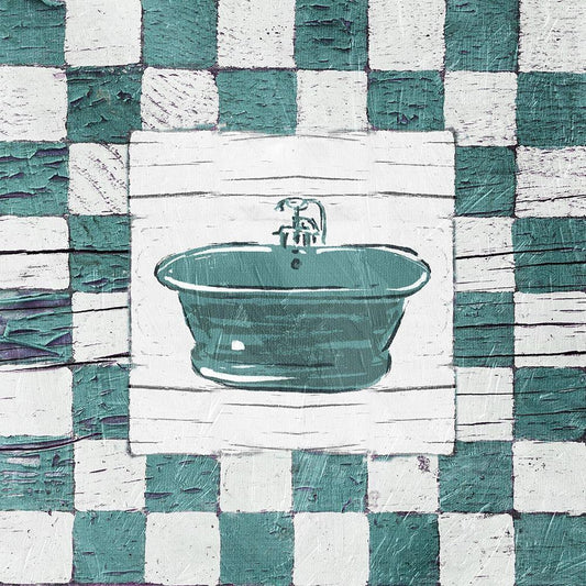 Checkered Bath White Modern Wood Framed Art Print with Double Matting by OnRei