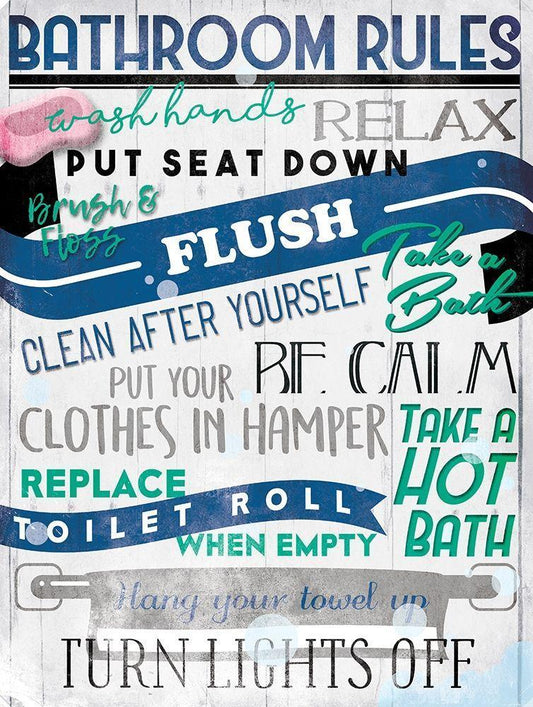 Bathroom Rules White Modern Wood Framed Art Print with Double Matting by Villa, Mlli