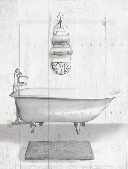 Vintage Bath White Modern Wood Framed Art Print with Double Matting by Villa, Mlli