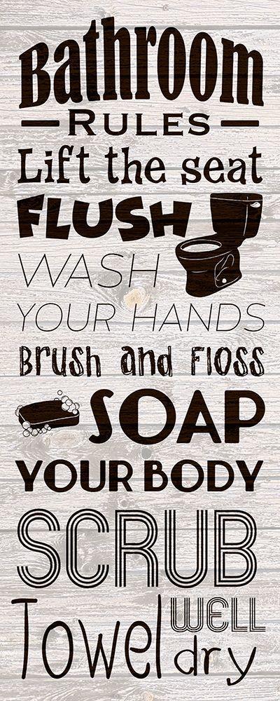 Bath Rules 533 White Modern Wood Framed Art Print with Double Matting by Prime, Marcus