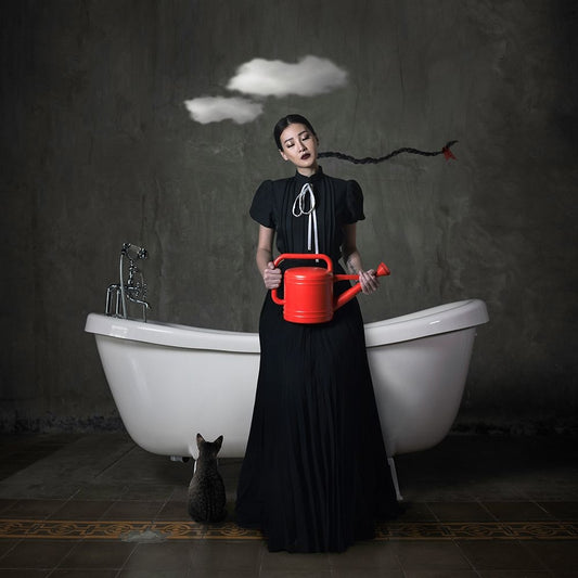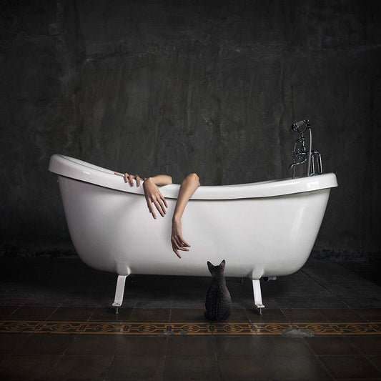 After a Bath White Modern Wood Framed Art Print with Double Matting by Holikova, Petra
