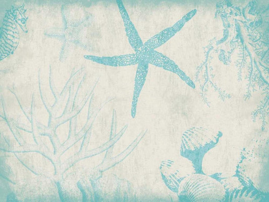 Sea Life in Aqua 1 White Modern Wood Framed Art Print with Double Matting by Grey, Jace