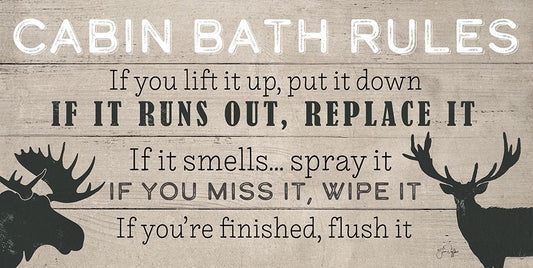 Cabin Bath Rules White Modern Wood Framed Art Print with Double Matting by Yass Naffas Designs