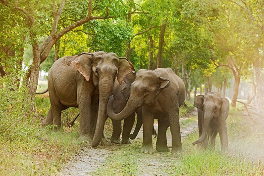 Asian Elephant Family in the Sal Forest Corbett National Park-India White Modern Wood Framed Art Print with Double Matting by Rajput, Jagdeep
