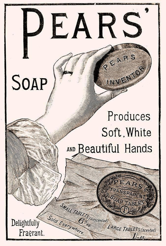 pears_soap_hands White Modern Wood Framed Art Print with Double Matting by Vintage Apple Collection