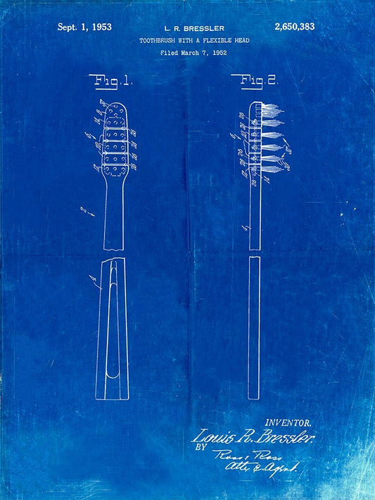 PP1102-Faded Blueprint Toothbrush Flexible Head Patent Poster White Modern Wood Framed Art Print with Double Matting by Borders, Cole
