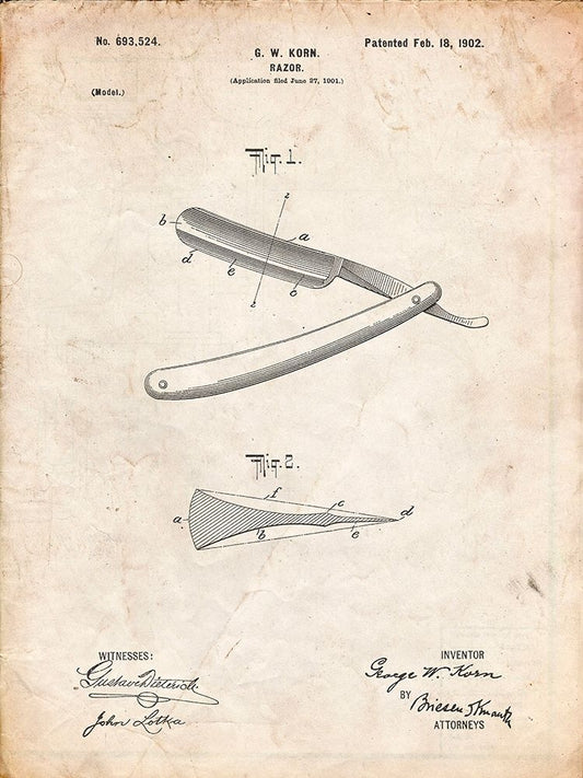 PP1178-Vintage Parchment Straight Razor Patent Poster White Modern Wood Framed Art Print with Double Matting by Borders, Cole