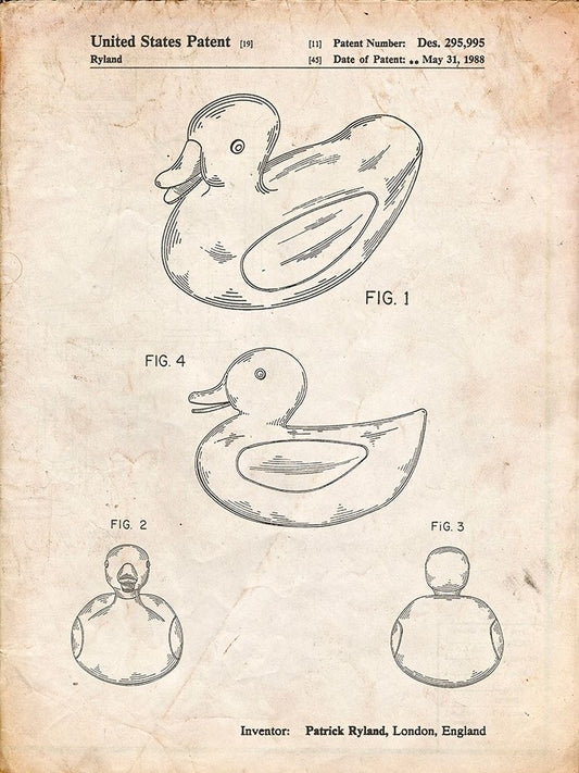 PP1021-Vintage Parchment Rubber Ducky Patent Poster White Modern Wood Framed Art Print with Double Matting by Borders, Cole
