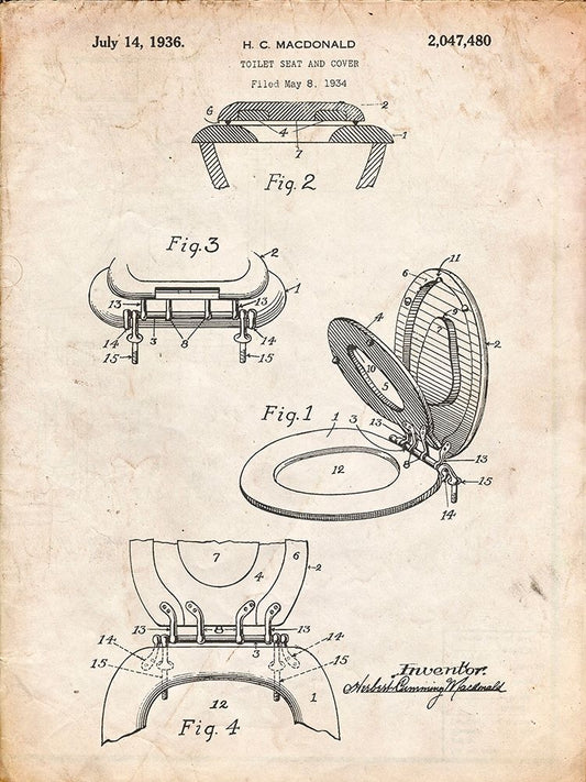 PP130- Vintage Parchment Toilet Seat Poster White Modern Wood Framed Art Print with Double Matting by Borders, Cole