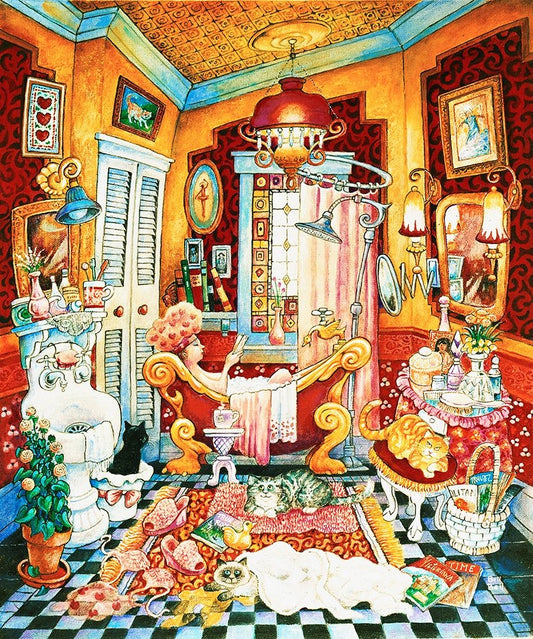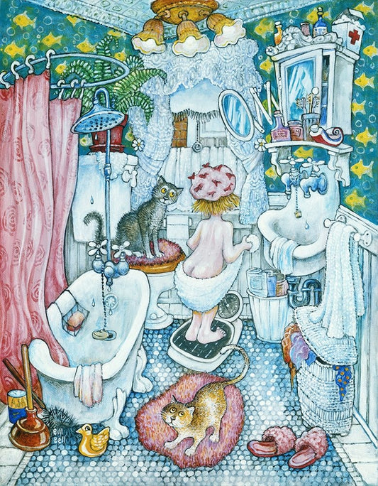 Bathroom Girl White Modern Wood Framed Art Print with Double Matting by Bell, Bill