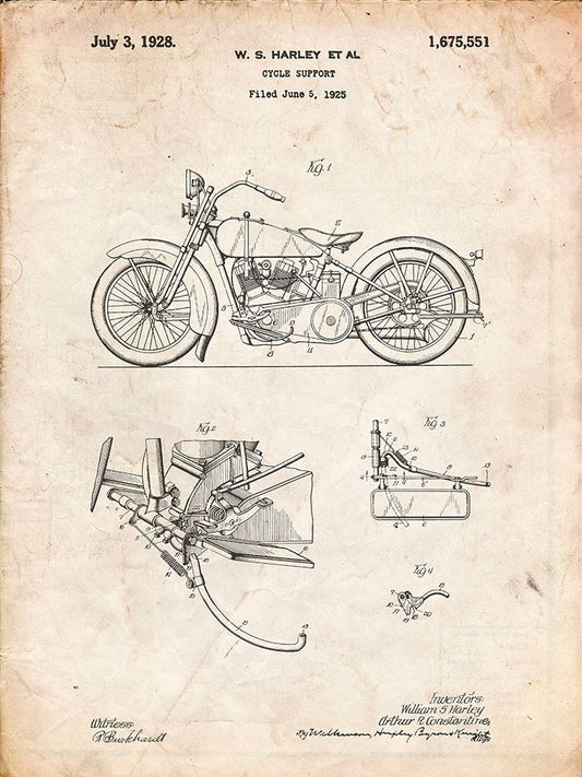 PP10-Vintage Parchment Harley Davidson Model JD Patent Poster White Modern Wood Framed Art Print with Double Matting by Borders, Cole