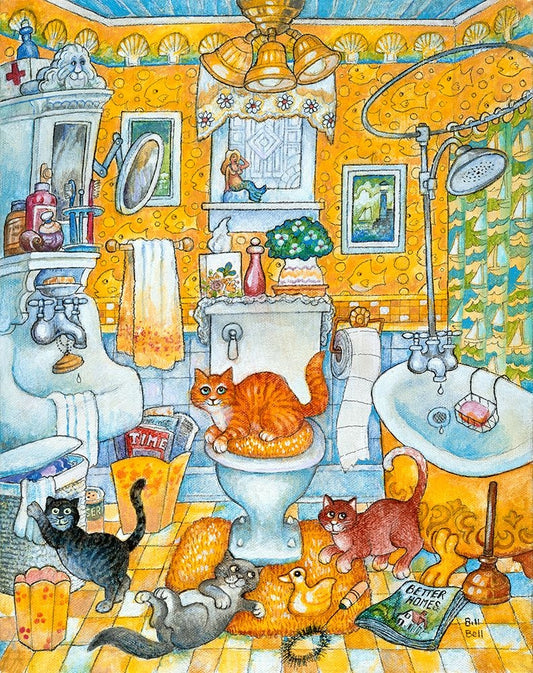 More Bathroom Cats White Modern Wood Framed Art Print with Double Matting by Bell, Bill