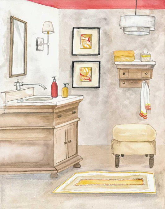 Watercolor Bath I White Modern Wood Framed Art Print with Double Matting by Ferry, Margaret