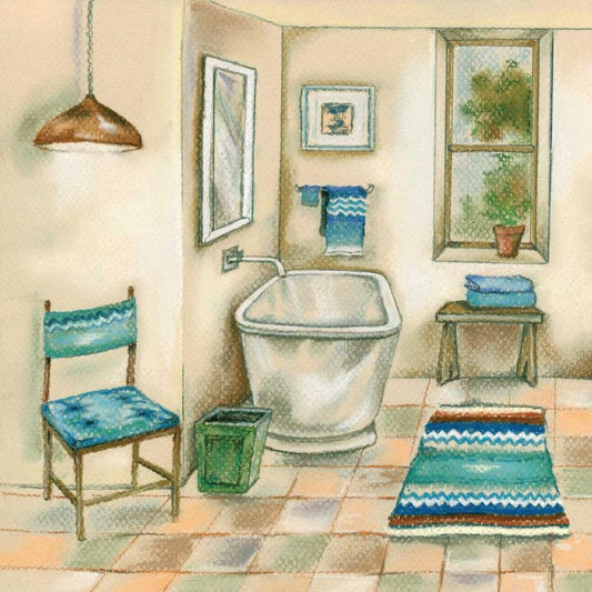 Watercolor Bath II White Modern Wood Framed Art Print with Double Matting by Ferry, Margaret