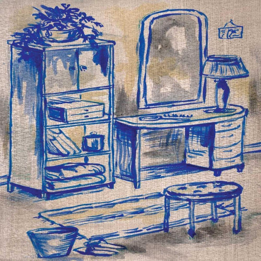 Deep Blue Bath I White Modern Wood Framed Art Print with Double Matting by Ferry, Margaret