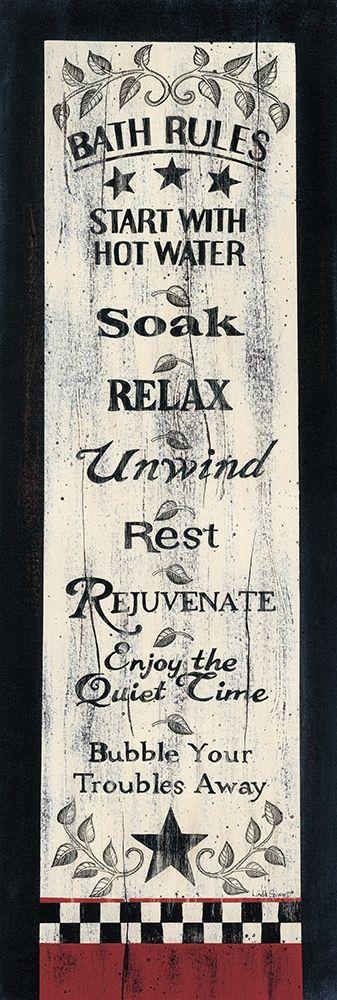 Bath Rules White Modern Wood Framed Art Print with Double Matting by Spivey, Linda