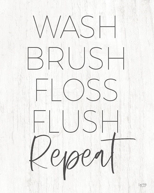 Wash-Brush-Floss-Flush-Repeat White Modern Wood Framed Art Print with Double Matting by Lux + Me Designs
