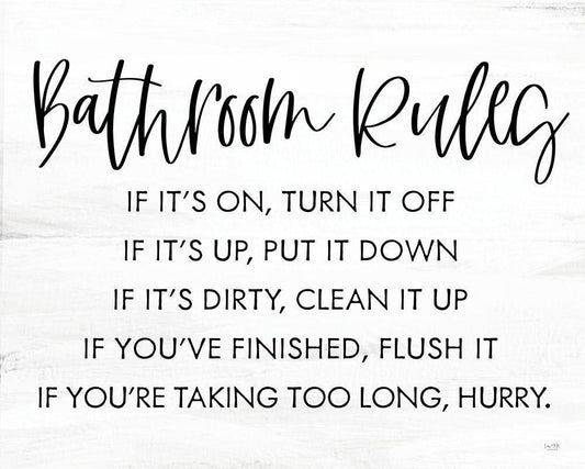 Bathroom Rules White Modern Wood Framed Art Print with Double Matting by Lux + Me Designs