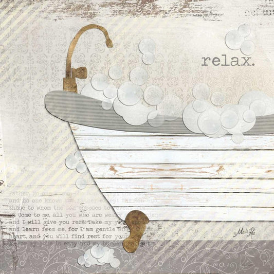 Soak Your Cares Away White Modern Wood Framed Art Print with Double Matting by Spivey, Linda