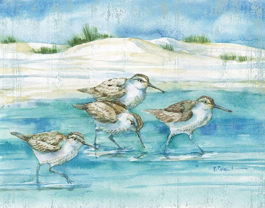 Sandy Sandpipers I White Modern Wood Framed Art Print with Double Matting by Brent, Paul