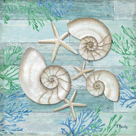 Clearwater Shells I White Modern Wood Framed Art Print with Double Matting by Brent, Paul