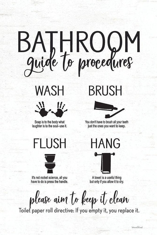 Bathroom Guide White Modern Wood Framed Art Print with Double Matting by Lettered and Lined