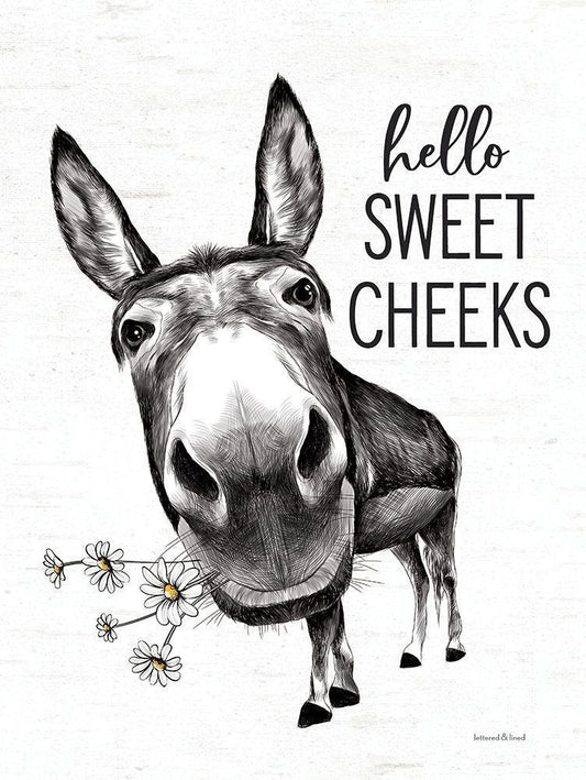 Hello Sweet Cheeks Donkey White Modern Wood Framed Art Print with Double Matting by Lettered and Lined