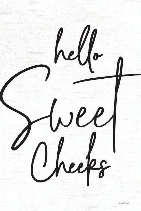 Hello Sweet Cheeks White Modern Wood Framed Art Print with Double Matting by Lettered and Lined