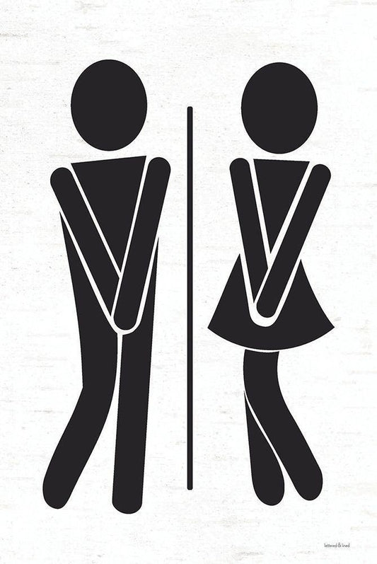 Unisex Bathroom White Modern Wood Framed Art Print with Double Matting by Lettered and Lined