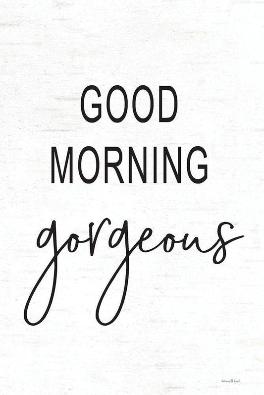 Good Morning Gorgeous White Modern Wood Framed Art Print with Double Matting by Lettered and Lined