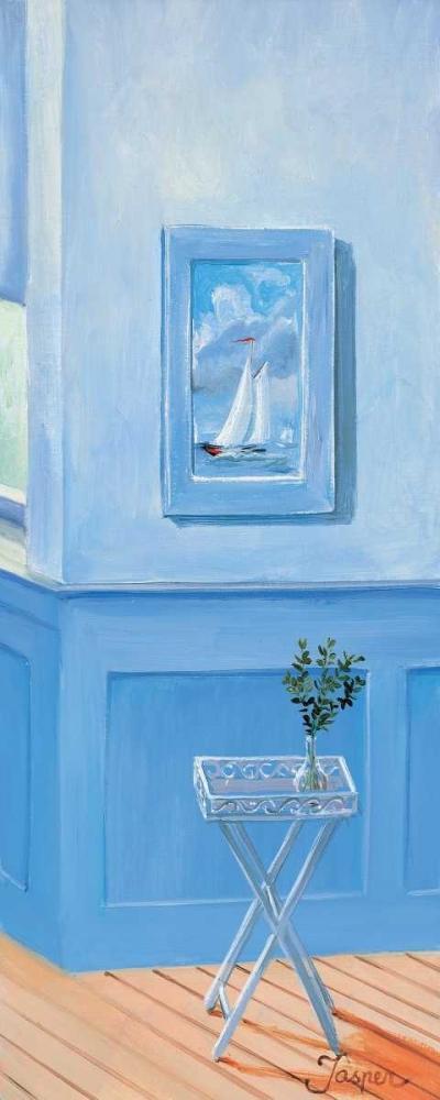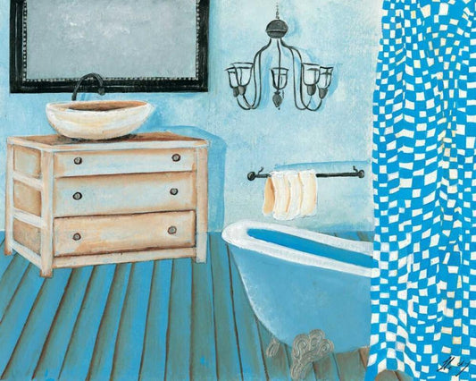 Bathroom in blue I Black Ornate Wood Framed Art Print with Double Matting by Jasper