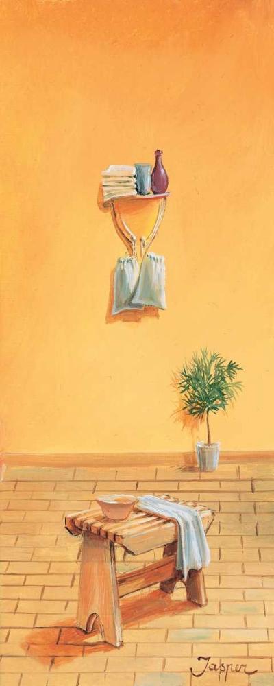 Bathroom in yellow I Black Ornate Wood Framed Art Print with Double Matting by Jasper