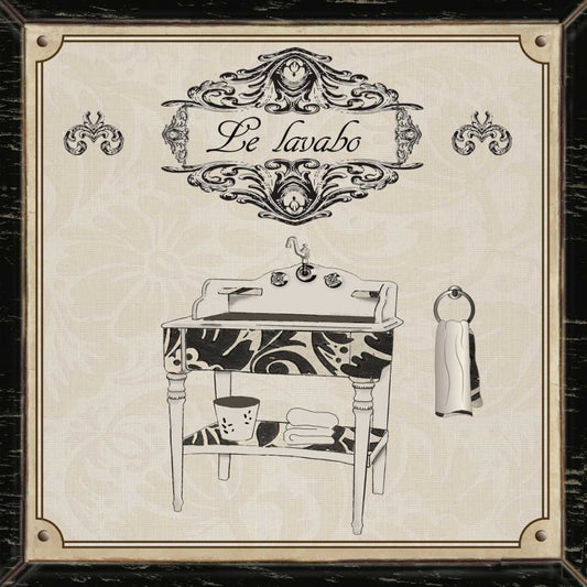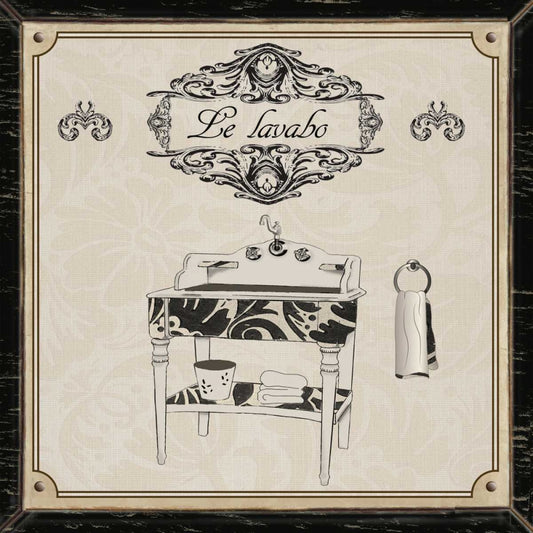 LE LAVABO - BLACK and CREAM Black Ornate Wood Framed Art Print with Double Matting by Ballantyne, Piper