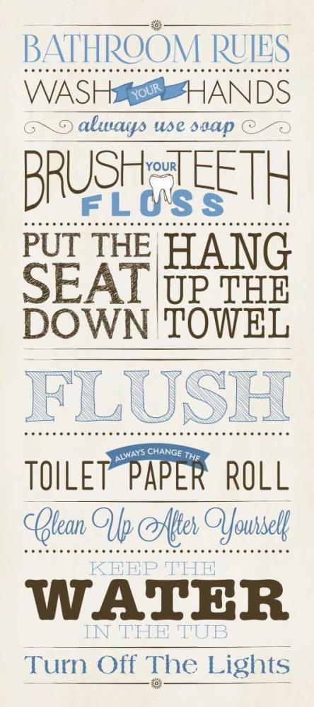 Bathroom Rules - Black Black Ornate Wood Framed Art Print with Double Matting by Marrott, Stephanie