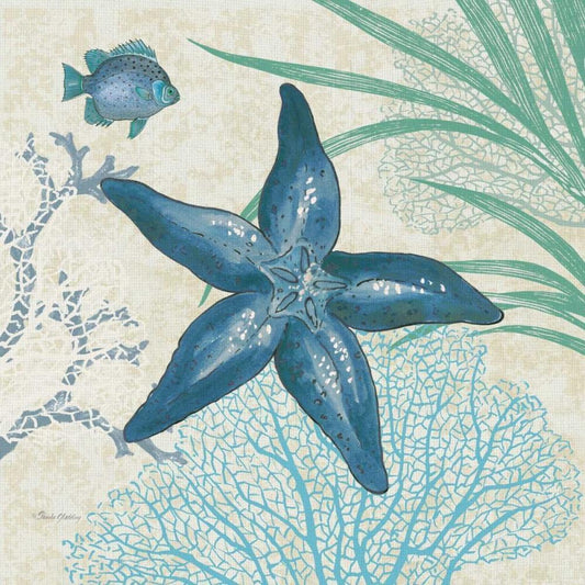 Oceana Indigo Sea Life I Black Ornate Wood Framed Art Print with Double Matting by Gladding, Pamela