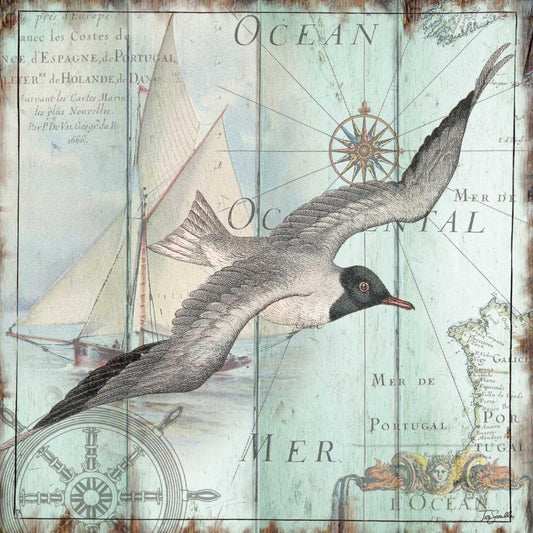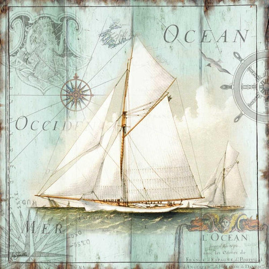 Antique La Mer I Black Ornate Wood Framed Art Print with Double Matting by Tre Sorelle Studios
