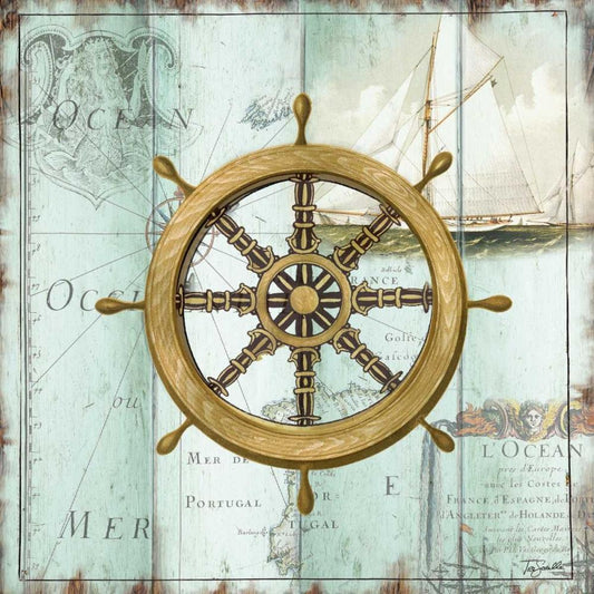 Antique La Mer III Black Ornate Wood Framed Art Print with Double Matting by Tre Sorelle Studios