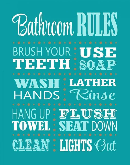 Bathroom Rules Black Ornate Wood Framed Art Print with Double Matting by Robinson, Tamara