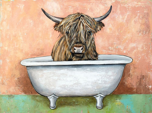 Bathtime Highland Cow Black Ornate Wood Framed Art Print with Double Matting by Seeley, Jenn
