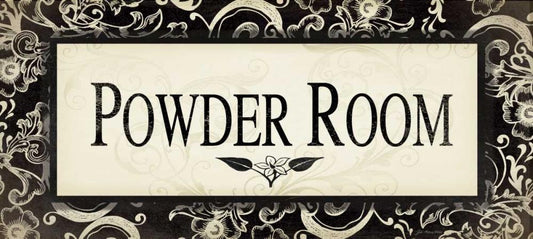 Powder Room Black Ornate Wood Framed Art Print with Double Matting by Moulton, Jo
