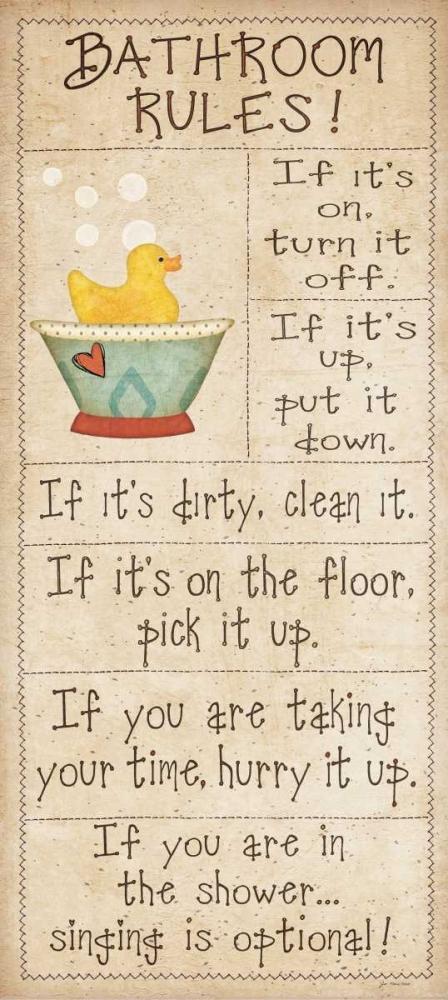 Family Bathroom Rules Black Ornate Wood Framed Art Print with Double Matting by Moulton, Jo