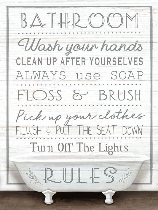 Bathroom Rules Black Ornate Wood Framed Art Print with Double Matting by Tyndall, Elizabeth