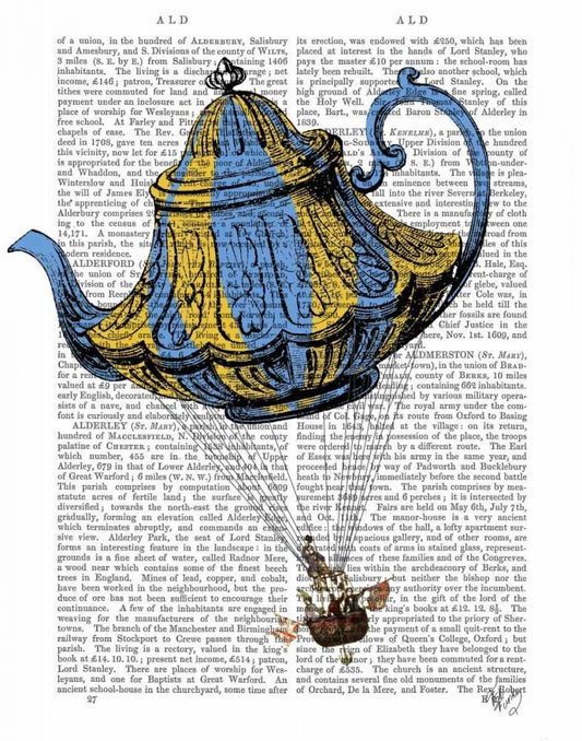 Flying Teapot 3 Blue and Yellow Black Ornate Wood Framed Art Print with Double Matting by Fab Funky