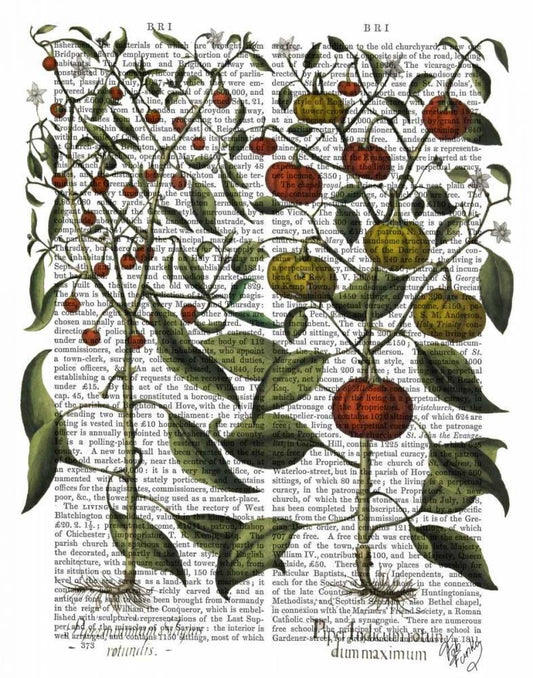Tomato Plant Black Ornate Wood Framed Art Print with Double Matting by Fab Funky