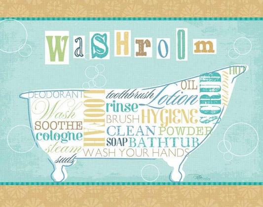 Bathroom Words II Black Ornate Wood Framed Art Print with Double Matting by Pela Studio