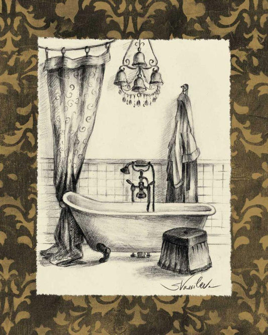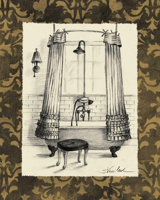 Elegant Bath I Black Ornate Wood Framed Art Print with Double Matting by Vassileva, Silvia