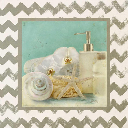 Silver Chevron Bath I Black Ornate Wood Framed Art Print with Double Matting by Pinto, Patricia