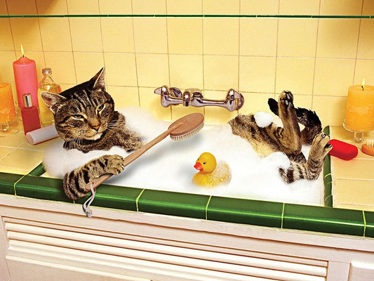 Bath Day Black Ornate Wood Framed Art Print with Double Matting by Heffernan, Lucia
